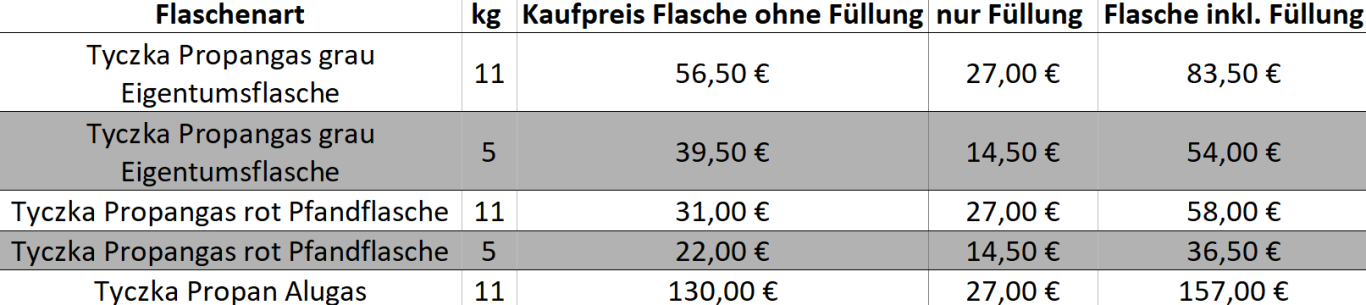 Als Vertriebspartner der Tyczka Energy GmbH verfügen wir über einen Vorrat aller üblichen Flaschengrößen.